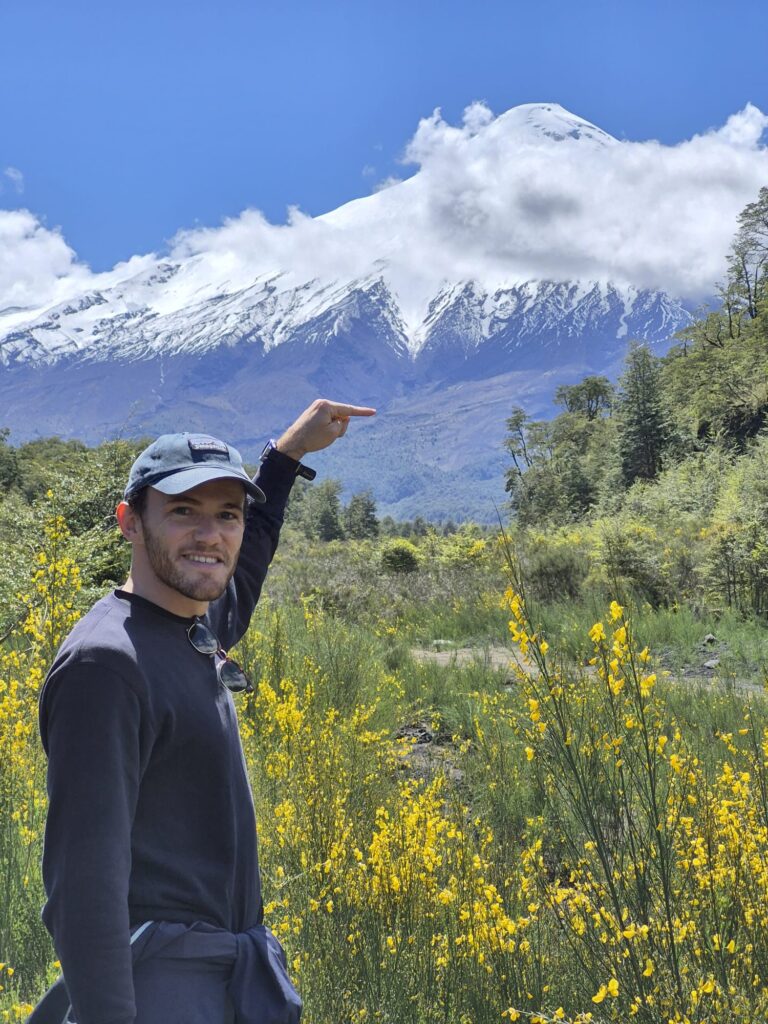 Le lendemain, nous partons découvrir le volcan Osorno, semblable au Mont Fuji mais au Chili ! Après une quarantaine de minutes de bus, nous voici au départ de la randonnée. Aujourd’hui, c’est Juliette qui guide et propose une « boucle » pour découvrir le volcan. Malheureusement, après une heure de randonnée, nous découvrons que le volcan est sous les nuages. Décidément, après le Salkantay au Pérou, nous n’avons pas de chance avec les pics et la météo. Tant pis, cela reste joli.