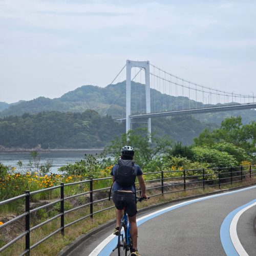 Nous quittons Okayama pour nous rendre à Onomichi d’où nous partirons pour deux jours de vélo. Mais avant cela, nous faisons une petite escale à Kurashiki, « la Venise du Japon ». Nous y passons la matinée et le déjeuner. C’est encore une magnifique petite ville et nous adorons nous y promener le long des canaux. Nous reprenons le train pour Onomichi, mais au moment de sortir de la gare, Quentin ne trouve plus son pass. Comme dirait Adam (le neveu de Juliette) « non mais là, c’est la catastrophe ! ». On vide tous les sacs sur le quai, impossible de trouver sa carte, on réfléchit 5 minutes : est-ce qu’il ne l’aurait pas laissée au guichet une fois l’avoir validée à la borne ? Peu importe, le plus problématique, c’est qu’il est coincé à l’intérieur de la gare ! Après une discussion plus que compliquée à travers Google trad avec les agents, nous arrivons à payer notre dû et sortons. Il nous faut maintenant trouver des vélos à louer pour les deux prochains jours. En effet, nous nous sommes rendus à Onomichi, ville d’où démarre une piste cyclable nommée Shimanami Kaido, qui relie l’île de Honshu à l’île de Shikoku via les îles de la mer intérieure de Seto. L’idée est de faire le trajet sur deux jours, déposer les vélos à l’arrivée et partir directement à Hiroshima. Nous trouvons un loueur qui nous permettrait de déposer les vélos à l’arrivée, mais il n’accepte pas les réservations. Chez lui, c’est premier arrivé, premier servi, et il nous conseille de revenir le lendemain, tôt, voire très tôt !