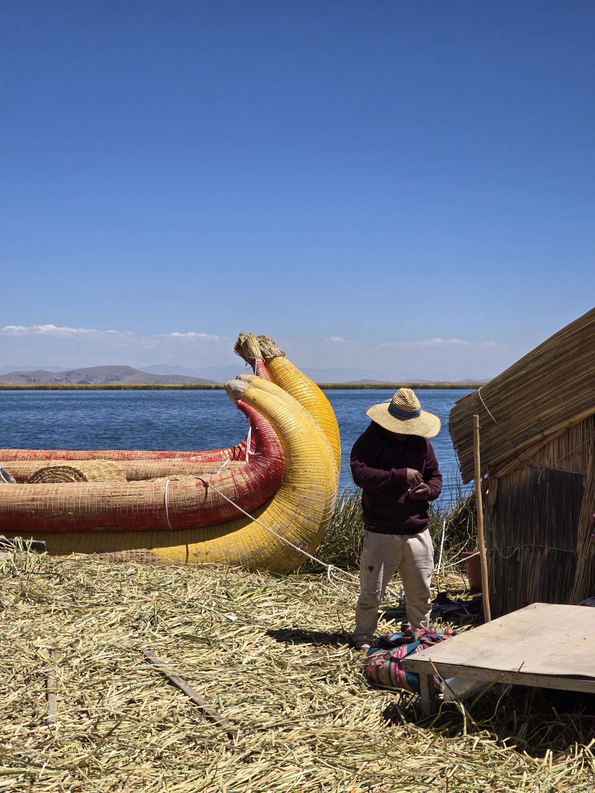 Le lendemain, nous visitons une seconde île naturelle où vit un autre peuple de 3 000 personnes. Après une petite balade, nous profitons d’un petit café avec une superbe vue sur le lac. Heureuse surprise, des Italiens nous invitent à jouer à un jeu de dés avec eux. Nous passons un très bon moment et nous nous amusons à utiliser le peu d’italien que nous maîtrisons (avec les gestes de mains en moins).