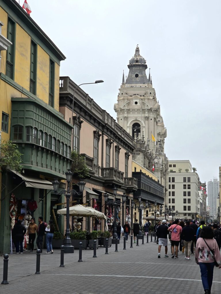 Après un rapide et dernier passage à Medellin, nous quittons définitivement la Colombie. Le sud de la Colombie et l’Équateur étant aujourd’hui déconseillés pour des raisons de sécurité (un attentat à Cali surviendra d’ailleurs juste après notre départ), nous mettons nos principes de côté et décidons de voyager en avion pour nous rendre à Lima, la capitale du Pérou. Grâce à nos très nombreuses réservations d’hôtels sur Trip.com, nous avons accès au lounge de l’aéroport, et nous comptons bien en profiter. C’est donc affublés de nos sacs à dos Décathlon que nous prenons place dans les canapés du lounge au milieu des businessmen et profitons de quelques petits verres de vin. Nous avons lu à plusieurs reprises que l’aéroport de Lima n’était pas bien famé. Arrivant à 22h, nous avons joué la sécurité et avons contacté l’hôtel pour qu’il vienne nous chercher en taxi. Entre ça et le lounge, c’est un trajet pas très backpacker, mais rassurez-vous, nous avons refusé de payer 30 € pour être assis à côté dans l’avion.