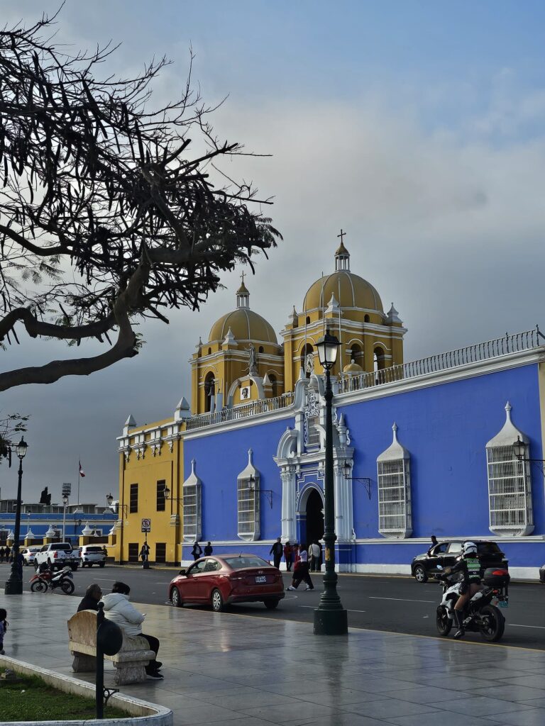 - Nous enchaînons immédiatement avec un bus de nuit pour rejoindre notre dernière destination dans le nord : la ville de Trujillo, réputée pour abriter les ruines des royaumes Moche et Chimu. À l’inverse de la Colombie, les bus arrivent ici plutôt en avance. Nous devions arriver vers 7h, mais c’est à 4h40 que nous sommes déposés à la gare routière… Nous attendons alors que le soleil se lève avant de partir à la recherche d’un café puis de notre hôtel. Nous visitons le site historique de Chan Chan, la capitale du royaume Chimu (du X° au XV° s.) et le plus grand complexe en terre du monde précolombien. Les bâtiments étant construits en adobe, le site est fortement érodé. Juliette, qui maîtrise l’écoute active comme personne, s’évertue à poser des questions au guide qui finit par s’agacer de toujours lui répondre que cette société ne connaissant pas l’écriture, nous n’avons que très peu d’informations. Étant dans une ville côtière, nous enchaînons avec un délicieux ceviche, où nous recevons environ 2kg de poisson chacun. Le lendemain nous visitons la Huaca de la Luna, une sorte de centre cérémoniel Moche (du I° au VIII° s.). Cette « pyramide », était un lieu de sacrifices humains et plus de 70 cadavres y ont été découverts. Les murs sont encore richement décorés avec des bas reliefs hauts en couleurs. La visite est intéressante, c’est un lieu vraiment unique et exceptionnel à visiter. Après ces belles découvertes, il est temps pour nous de nous diriger vers la mythique ville de Cuzco ! C’est reparti pour un bus de nuit…